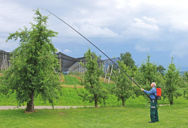 A svájci növényvédő specialista, Birch Meier Sprühtechnik AG permetezés-technikai vállalat bemutatta új, teleszkópos XL 8 típusú szórócsövét, amely kézi működtetésű (háti-, vagy mobil tartályos) permetezőgépekhez kapcsolható fel. Az XL 8 szórócsővel a magas növésű fák koronája a talajról is könnyen elérhető, így például jól írtható a tölgyet és cserfákat károsító búcsújáró lepke (Thaumetopoea processionea), de kommunális fel-