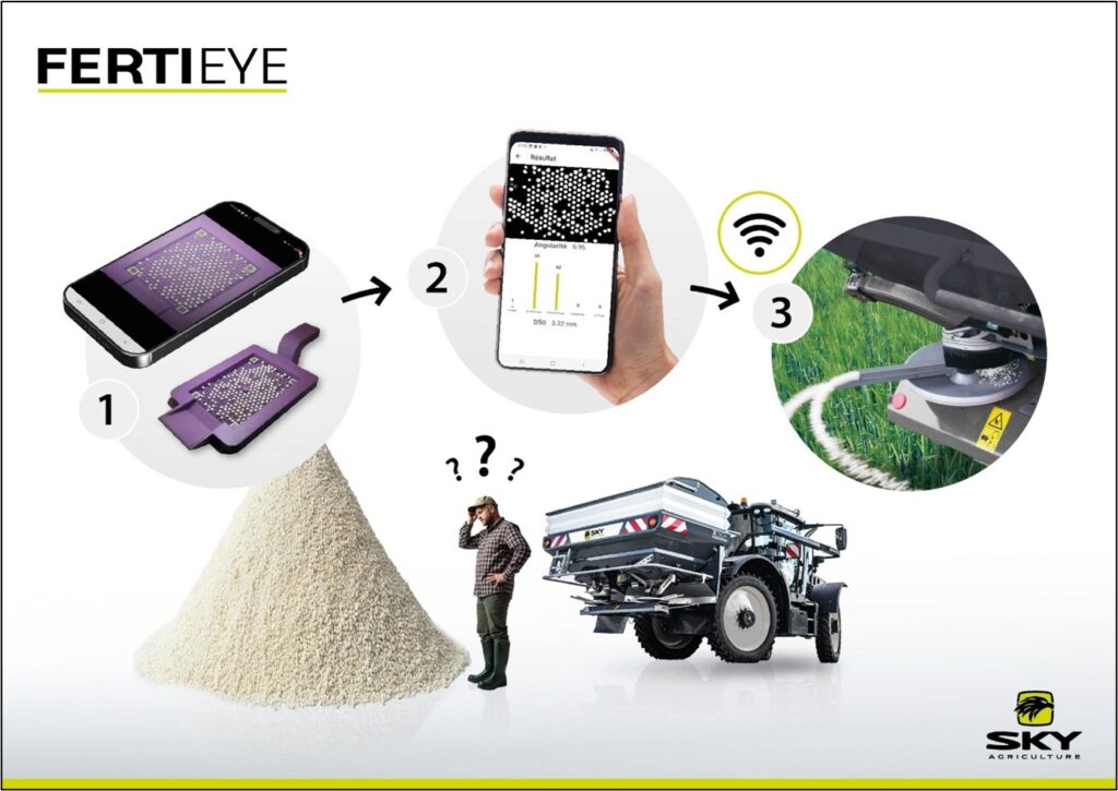 Egyes gyártmányokhoz pedig képalkotó, felismerő rendszert fejlesztettek ki. (11. ábra) A rendszer mintavételezés alapján határozza meg a műtrágya fizikai-, geometriai paramétereit, ezt nevezhetjük „NIR” módszernek is. A geometriai méretek alapján kalibrálja a műtrágyaszemcséket, részecskéket, alak- és szín szerint meghatározhatók a ballisztikai repülési paraméterek.